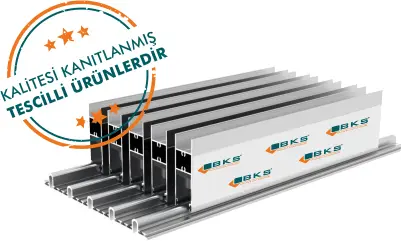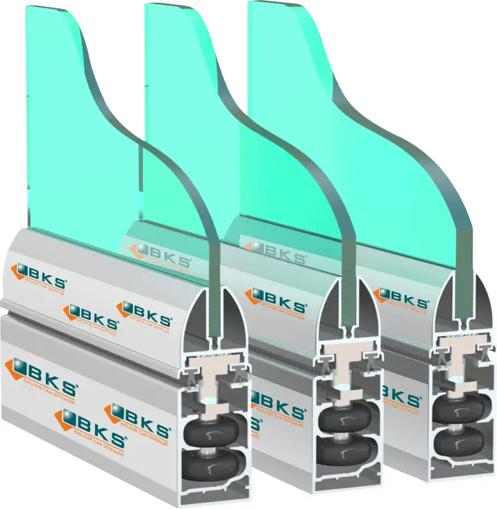 BKS Lüx Sürgülü Sistemde Kullanılan Kasa Profili (Ray Profili), 3'lü ve 5'li Ray Seçeneklerimiz Mevcuttur. Yapılan Yük Taşıma Testleri Sonucunda Her Bir Paneldeki Çift Teker Sayesinde Ray Üzerinde Dengeli Gidecek Şekilde Dizayn Edilmiş Ve Üretilmiştir.