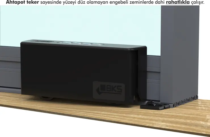 BKS Walking motor tüm sürgülü sistemlere uyumlu, Uzaktan kumandalı oturduğunuz yerden rahatlıkla harekete geçirebildiğiniz güçlü Ahtapot tekerleri sayesinde yüzeyi düz olamayan engebeli zeminlerde dahi rahatlıkla çalışır.